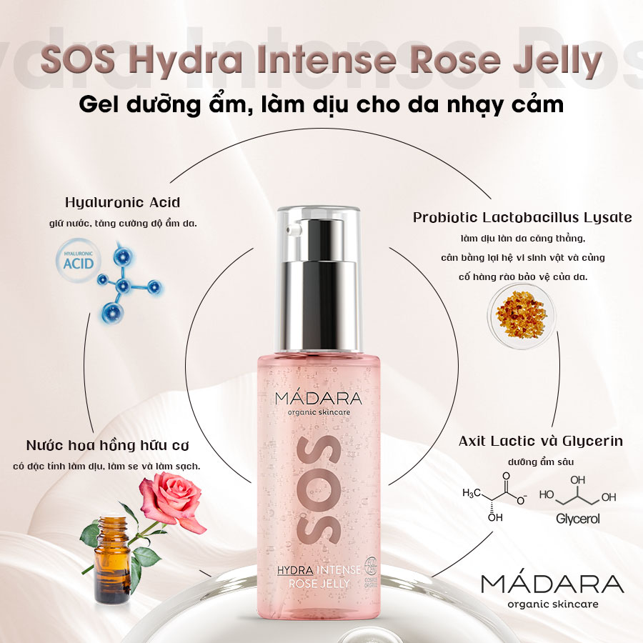 Mádara SOS Hydra Intense Rose Jelly - Gel dưỡng ẩm, phục hồi & làm dịu cho da nhạy cảm